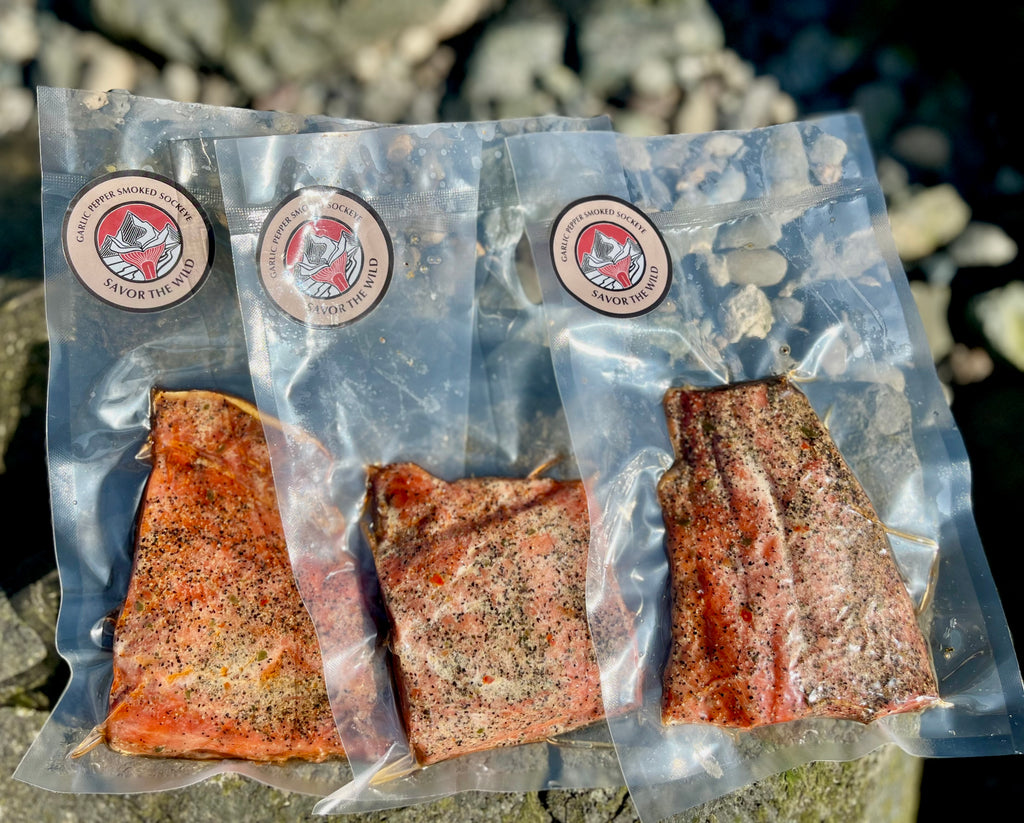(3) Garlic Pepper Smoked Sockeye 5oz Packages - Golden